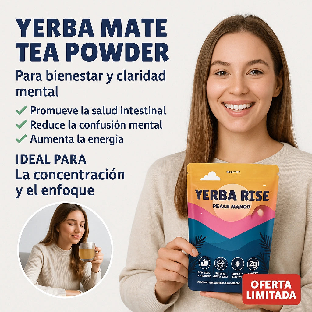 Imagina comenzar el día con claridad, sin ansiedad ni bajones de energía. Con YERBA MATE TEA POWDER, te sientes ligero, enfocado y motivado desde el primer sorbo. Tu rutina mejora: trabajas con más ánimo, entrenas con más energía y enfrentas cada día con bienestar natural.